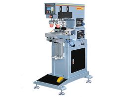 Двухцветный тампонный станок WN-123 для печати логотипов и маркировок на различные изделия от флешек до промышленных деталей. Станина позволяет работать на изделиях большей высоты.